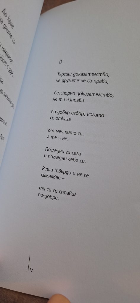 Какво да кажа… чувствам я моя. Просто ще си позволя да споделя едно от стихотворенията и ще замълча: